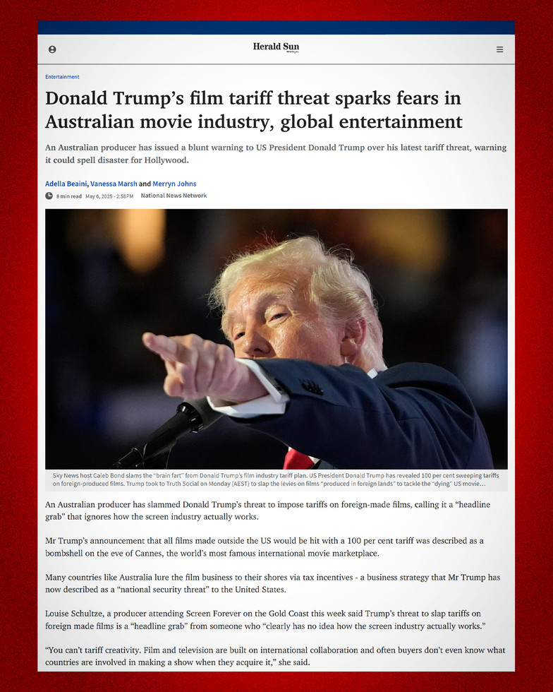 AUSTRALIAN PRODUCTION HOUSE STANDS UP TO TRUMP FILM TARIFF THREAT